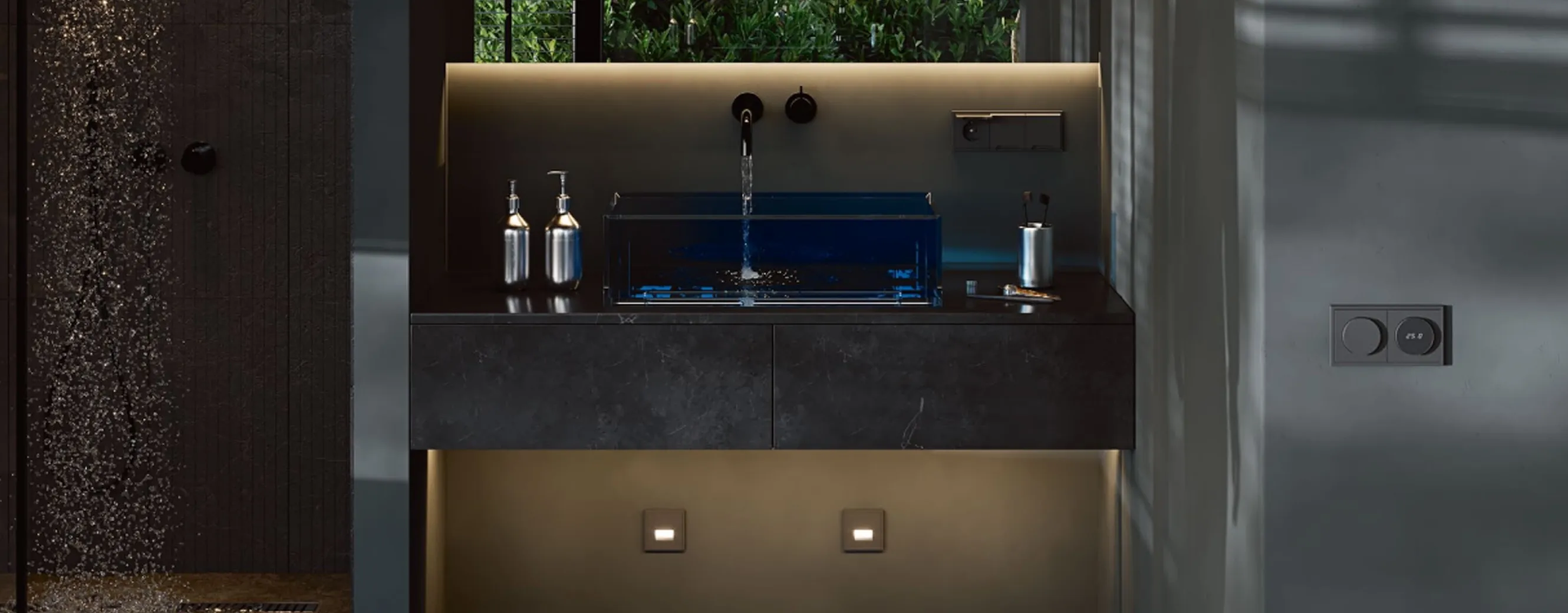 - Светодиодная подсветка — мягкий, ненавязчивый свет для лестниц, коридоров и спален, создающий эффект «светящейся стены»;